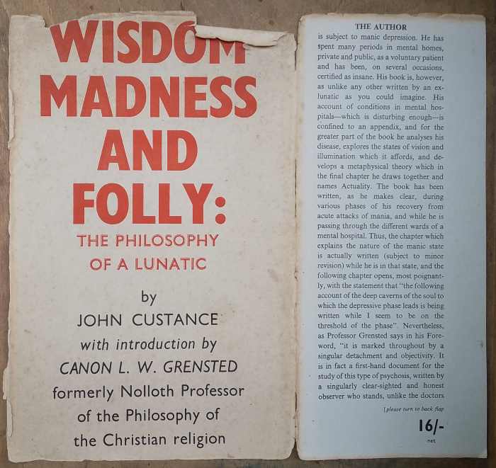 The letter includes the words ...“a copy of a rather strange book I am publishing with the pseudonym of John Custance. The reasons for anonymity are obvious; the book is primarily the record of the abnormal experiences of mental trouble and an attempt to make sense of them.” (Fig 1.)
