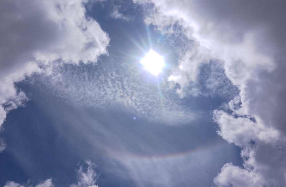 Diffuse cloud with hair-like protrusions over Cambridge in the early afternoon on 4 May 2024. Photographed from Burleigh Street.Diffuse cloud and aircraft condensation trails in the sky over Devon near Totnes, 12 April 2024The sun shining through diffuse cloud over London, 12 April 2024.A long strip of cloud against a sky of patches of diffuse cloud seen from Stourbridge Common, Cambridge, 14 April 2024. Parts of the cloud strip give the impression of bristles, pointing outwards perpendicular to its length. The sky lower down towards the horizon is a uniform white. The continuation of this cloud strip is in the next photograph.Another section of the strip of cloud in the previous photograph at Stourbridge Common, Cambridge, 14 April 2024.The same strip of cloud as the previous two photographs at Stourbridge Common, Cambridge, 14 April 2024. Here more of its length has been captured using so-called “panoramic” mode, meaning the camera is panned round during the shot.15 May 2024. What in Cornwall at least since June 2023 is a familiar sight, the sun shining through diffuse hazy cloud. The inverted rainbow effect near the bottom of the picture was visible without a camera and so is not an artefact of the camera. A detailed view of the rainbow is in the next photograph.What looks like a small inverted rainbow in the sky around the sun shining through haze in Cornwall on 15 May 2024. This image is cropped from the previous photograph.A Cornish sunset criss-crossed with persistent aircraft condensation trails after a day of fog lasting well into the afternoon despite temperatures of around 24°C, 5 September 2023.